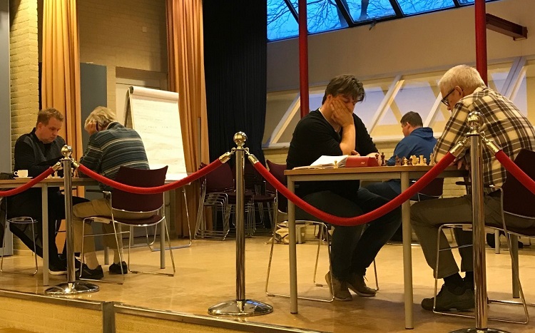 Om kwart over negen was er de eerste nul. Koen Wansink was behoorlijk vermoeid achter het bord gekropen en moest verdubbeling van de Torens van zijn tegenstander toestaan.