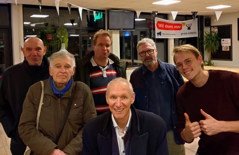 SOS: Pallas 2 wint nu wel van Voorst 2Na een remise van Henk van der Tol, scoorden vrijwel gelijktijdig Simon Kok en Koen Wansink het volle punt. Met deze voorsprong bracht teamleider Jasper Zweedijk met een halfje het eerste matchpunt binnen. Na de draw van Eric Goedhart kon de vlag uit, en had het gepruts van Gorrit Smit geen ernstige gevolgen. Onder de foto nog wat persoonlijke notities: De feestvreugde Het mag inmiddels duidelijk zijn dat ik niet in de wieg ben gelegd om werkzaamheden in een manege uit te voeren. Na een prima begin met 2 pionnen voor en de meerderheid op de Damevleugel, leek het "kat-in-het-bakkie". Maar zijn gehuppel met Paarden bracht daar steeds meer verandering in. Als rechtlijnig denkend mens kan ik dat manke gedoe van die beesten (pardon, dieren) niet altijd volgen. Kortom van prima naar remise naar verloren stelling. En dat op één avond, je moet het maar kunnen. Zero points dus. Bord 2: Henk van der Tol Met zwart tegen Rolf van Agtmaal kwam er een Reti op het bord. Vrijwel de gehele partij ging het gelijk op. Op een gegeven moment werd ik min of meer gedwongen tot zetherhaling of het afruilen van de beide Torens. Er zou dan een stelling overblijven met ongelijke lopers. Daarom remise aangeboden, wat werd aangenomen. Bord 3: Eric Goedhart Bord 4: Jasper Zweedijk Bord 5: Koen Wansink Bord 6: Simon Kok In mijn partij ging het redelijk gelijk op. Na 23 zetten remise aanbod gedaan wat werd afgeslagen. Daarmee over speelde hij zijn hand want een kleine onzorgvuldigheid koste hem na 52 zetten de winst. Mijn langste partij ooit. Zou ik mijn geduld skills verbeterd hebben ?