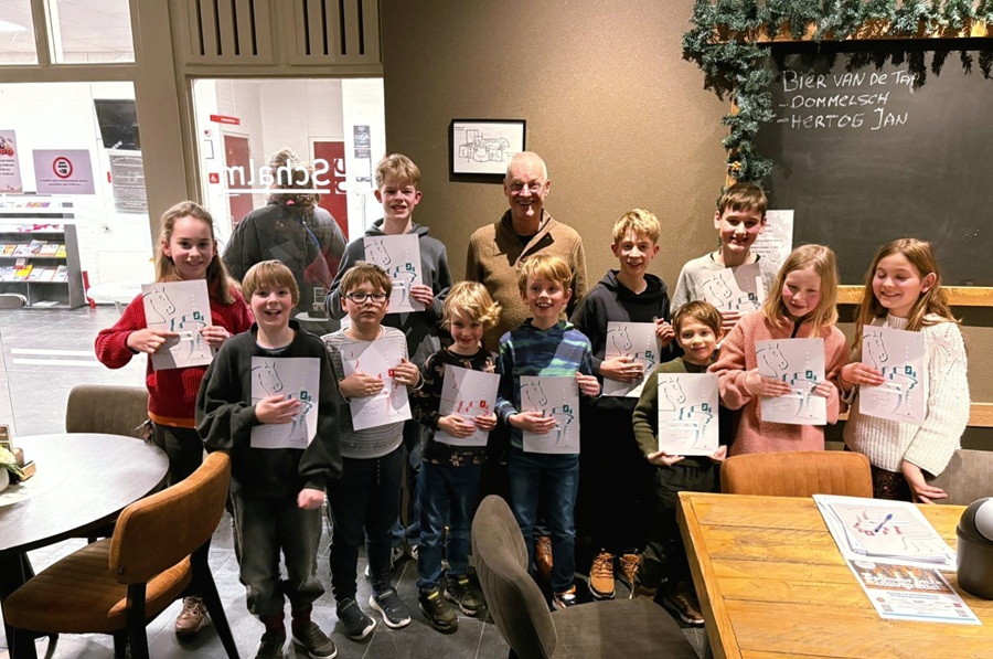 Examens, altijd spannendDat kan gebeuren, maar je kunt natuurlijk wel schaken! Een enorme hoeveelheid kinderen heeft onder leiding van examinator Toin Lambrechts zitten zwoegen op de opgaven. Enkelen hadden daar wat minder moeite mee. Zo haalden Alvand en Maas een 10 en Luuk en Artem een 9. Gelukkig ook een aantal achten, maar ook flink wat kinderen die niet een topdag hadden. De meesten gelukkig wel geslaagd. Bijzonder was wel het Stap 5 diploma van Walter, deze worden zeer zelden uitgereikt. Op de foto v.l.n.r.: achterste rij; Luuk, examinator Toin, Quinten, Maas voorste rij; Jonna, Teun, Max, Simon, Jonas, Artem, Marie en Fieke. Samuel, Arvand en Walter waren al gevlogen.