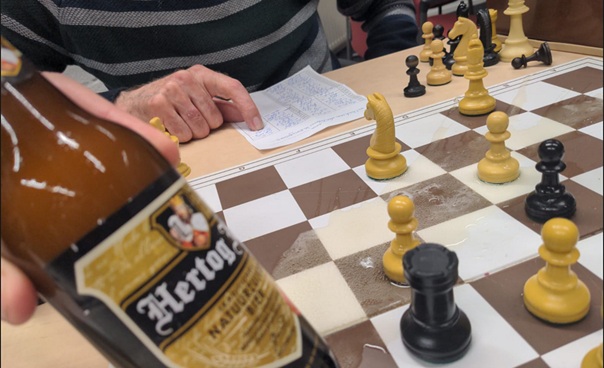 En voordat je het weet, kom je aan op de bestemming. Zoals Gerben het zo mooi zegt: een industriegebied dat bijna zielloos aandoet. Laten we eens kijken hoe onze bomenhaag zich deze ronde heeft gevormd. Frank Breurers (Bord 1): Ik kwam met wit slecht uit de Scandinavische opening. M'n tegenstander had 'n pion veroverd zonder dat ik daar compensatie voor had. In het middenspel kon ik terugkomen tot 'n stelling die ik nauwelijks kon verliezen. Echter op het moment dat ik juist dacht het initiatief over te nemen, maakte ik 'n gigantische blunder. Gefrustreerd kon ik direct opgeven. 0-1 Gerben Gerritsen (Bord 8): Mijn tegenstandster raakte in een Nimzowitsch het spoor al snel bijster en kwam een twee pionnen achterstand niet meer te boven. Finale afronding kostte nog de nodige hoofdbrekens maar mat bleek onafwendbaar. 1-1 Jan Wout (Bord 7): Aantredend met wit tegen Frank Hordijk, begon ik met c4. Na de Agincourt Defense op het bord te krijgen, werd het een droge opening en middenspel. Ik wikkelde af richting een toreneindspel, waar ik een voordeeltje zag vooraf. Dit bleek uiteindelijk ook het geval, en kon het richting een goed einde brengen dankzij het creëren van 2 vrijpionnen in het centrum tegen 1 als eerder gecreëerde vrijpion op de b lijn van mijn tegenstander. Ondertussen wel 1 kans geboden aan mijn tegenstander om remise te houden, maar ik had het geluk dat dit niet werd benut. 1-2 Henk van der Tol (Bord 5): Mijn partij tegen Karin Pruissers ging tot de 26e zet gelijk op. Daar miste ik een grote kans: Th4. In de analyse met Gerben en Jan Wout overigens ook gemist. Vanaf daar tot en met de 40e zet ging het weer gelijk op. Daar deed mijn tegenstandster een mindere zet. Maar in de foute veronderstelling dat ik steeds minder zou hebben gestaan was ik allang blij met remise, en bood dus onterecht remise aan. Al met al wel een mooie partij. 1,5-2,5 Marco van Sittert (Bord 4): Met zwart speelde ik de Philidor defensie, Mijn tegenstander speelde het goed en ik werd een beetje over lopen op de koning vleugel. Waar hij een sterke aanval opzette. Maar dat liet wel grote gaten vallen achter de frontlinies Mijn tegenstander had nog 1 zet nodig om mij mat te zetten. Waar door ik de aanval kon inzetten wat tot een remisestelling leiden. Ik bood hem dat ook aan maar hij dacht daar anders over. En ging met de koning aan de wandel waarvoor hij door onoplettendheid in een mat net verstikt raakte. 1,5-3,5 Robert Capel (Bord 3): Om een standaard en saaie Caro Kann te vermijden deed ik f4 op de 2e zet om na he antwoord van d5 door te schuiven met e5. Niet de beste oplossing maar tot en met zet 12 waren de engine en ik redelijk tevreden (-0,2). Daarna kwam tegenstander wat beter te staan, maar nadat alle lichte stukken van het bord waren verdwenen kwam ik in een openstelling met beiden een toren en dame iets beter te staan. Op zet 32 en 33 heb ik een winnende voortzetting gemist (o gruwel). Daarna was het van beide kanten opletten maar werd remise op zet 55 onvermijdelijk. 2-4 Laurens de Vries (Bord 6): Na een mislukte opening in de Semi-Tarrasch was ik gedwongen om Kf8 te spelen om mijn centrumpion niet op te hoeven geven. Daarna heb ik snel dames afgeruild waardoor ik tijd kreeg om mijn stukken te ontwikkelen zonder directe mataanvallen. Langzaam kroop ik op weg naar de remise en kwamen we aan in een toreneindspel, mijn tegenstander met een pion meer, mijn f4 pion hield de f3 en g 2pion tegen en mijn d4 pion had een vrije overgang tegen de vrije pion van wit op b5. Al snel had ik door dat hij het eindspel niet goed begreep en begon hij veel na te denken waardoor ik wonder boven wonder het eindspel nog eens heb weten te winnen en daarmee de winnende punt binnenhaal. 2-5 Robert van Andel (bord 2): Zo'n klassiek potje in het echt is toch wat anders dan 10 minuten rapid spelen op mijn telefoon. Gebrek aan wedstrijdritme en stamina resulteerde na 3/4 uur in een hoop slordigheden aan mijn kant van het konings-indische strijdveld. Dat mijn tegenstander eigenlijk de hele partij geen enkel steekje liet vallen hielp ook niet mee en maakte de eindscore welverdiend. 3-5 Jan Wout deelde nog: De meesterklasse was ook aan de gang in dezelfde ruimte, erg leuk om in het echt te zien, met veel bekende gezichten. De overwinning van ons team werd ingetogen gevierd, al lag tijdens de analyse van de pot van Henk, er op een gegeven moment wel een halve fles bier over een schaakbord...