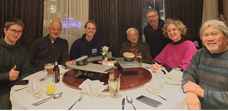 KNSB: 038 uit, altijd lastig. Niet voor Pallas 3 ?De start was dan ook stroef. Een der ratinglozen bracht tegen King Wullur onze eerste nul op het bord. Een remise van Harmke Luijting en een overwinning van Gorrit Smit zorgden voor het broodnodige evenwicht in de stand. Drie overwinningen op rij van achtereenvolgens Jasper Zweedijk, Walter Kaemingk en vader Frank zorgden daarna voor de zege. Een ongelukkig nulletje van Gerard Burgers kon toen geen kwaad meer en nadat Tjeerd de Jong met een extra Paard langdurig tegen een pionnenmuur moest beuken om het punt binnen te halen, werd de eindstand 2 1/2 - 5 1/2. En dat is altijd lekker als je een uitwedstrijd speelt. In de stand zijn we behoorlijk aan het jo-jo-en. Van koploper naar degradatiekandidaat, nu weer op plaats 2 met slechts 1 bordpuntje minder dan nummer 1 Rijssen dat steken liet vallen tegen SG Max Eeuwe 5. Onze volgende tegenstander, waar moet blijken waar we werkelijk staan. Na afloop nog naar het lokale Chinees-Japans restaurant, waar het weer gezelligheid troef was. Frank was helaas verhinderd, maar zoon Walter nam een 'doggy bag' voor hem mee. Onder de foto nog wat persoonlijke notities van spelers.